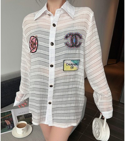 • [홍콩명품.CHANEL] 샤넬 23SS CC로고 시스루 남방 셔츠, BM6290, TOP, 홍콩명품쇼핑몰,인터넷명품,온라인명품사이트,여자명품,해외직구