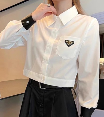 [홍콩명품,PRADA] 프라다 23SS 삼각로고 여성 포플린 쇼트 남방 셔츠 (3컬러), BM10589, TBG, 홍콩명품의류,구매대행,온라인명품 > 여성몰