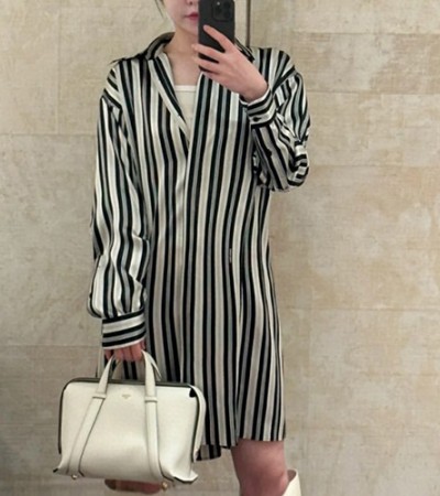 • [홍콩명품,FENDI] 펜디 24SS 로고 여성 스트라이프 포플린 롱 남방 실크셔츠, BM11754, TBG, 홍콩명품의류,구매대행,온라인명품