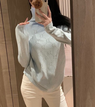 • [홍콩명품,Christian Dior] 디올 24SS 로고 패턴 여성 하이넥 프리사이즈 슬림핏 티셔츠 니트 스웨터 (4컬러), BM11797, W2, 홍콩명품의류,구매대행,온라인명품
