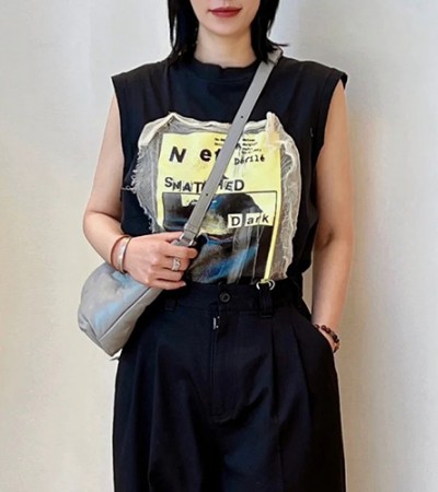 [홍콩명품.Maison Margiela] 메종마르지엘라 24SS 로고 그래픽 슬리브리스 탑 티셔츠 (블랙), BM12116, BR, 홍콩명품의류,구매대행,온라인명품 > 여성몰