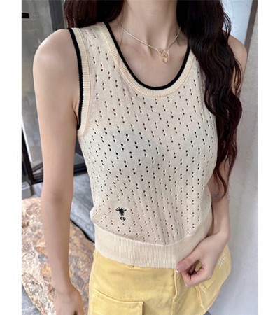 • [홍콩명품,Christian Dior] 디올 24SS 로고 여성 스타 슬리브리스 V넥 니트 탑 (2컬러), BM15296, TBG, 홍콩명품의류,구매대행,온라인명품