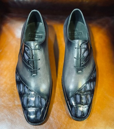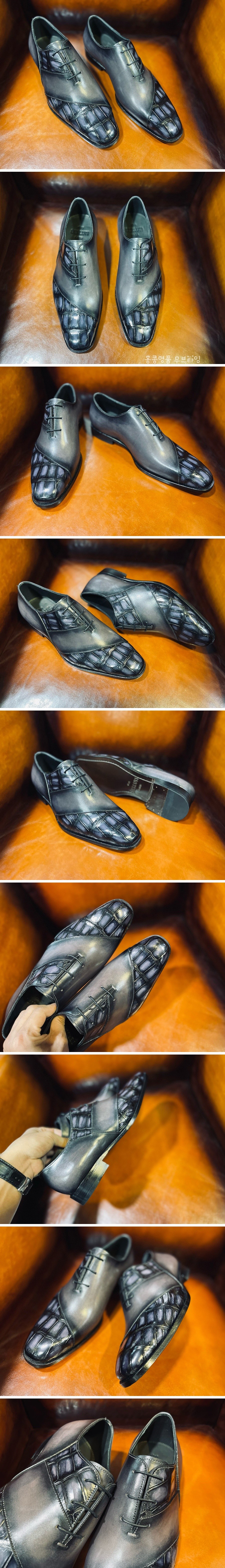 • [홍콩명품.BERLUTI] 벨루티 23SS 로고 레더 악어가죽 정장 구두 (그레이), SE3239, BLB, 명품스니커즈,운동화,구두,로퍼,하이탑,신발