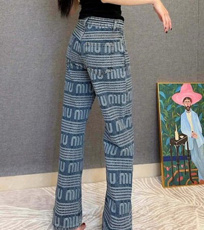 [홍콩명품,MIU MIU] 미우미우 24SS 로고 패턴 여성 오버핏 데님 팬츠 진 청바지, BM15216, BR, 홍콩명품의류,구매대행,온라인명품 > 여성몰