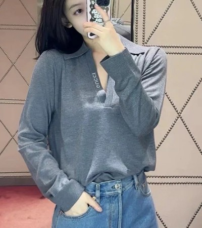 • [홍콩명품.Gucci] 구찌 24SS 로고 여성 카라 V넥 니트 스웨터 (그레이), BM15283, TBG, 홍콩명품의류,구매대행,온라인명품