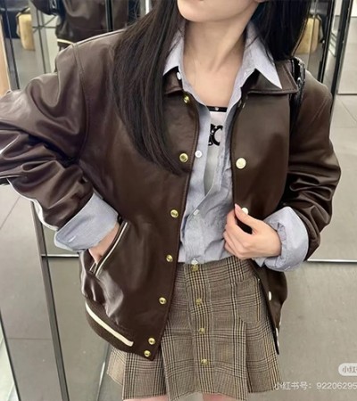 [홍콩명품.CELINE] 셀린느 25SS 로고 여성 램스킨 가죽 봄버 자켓 (브라운), BM19308, TBG, 홍콩명품의류,구매대행,온라인명품 요약정보 및 구매