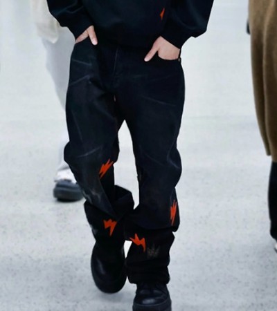 • [홍콩명품. Amexnocap] 플래시 패치드 25SS 로고 데님 팬츠 진 청바지 (블랙), BM19347, KK, 홍콩명품의류,구매대행,온라인명품