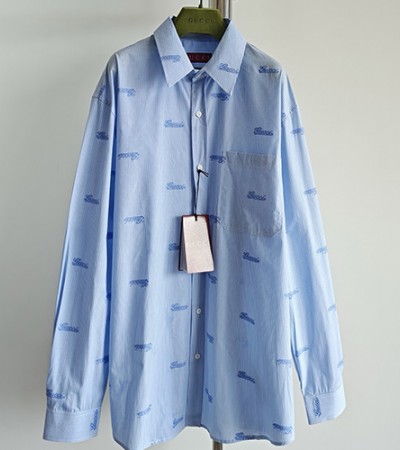 • [홍콩명품.Gucci] 구찌 25SS 로고 패턴 스트라이프  남방 셔츠 (스카이블루), BM19508, JU, 홍콩명품의류,구매대행,온라인명품