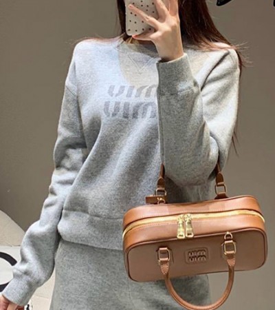 • [홍콩명품,MIU MIU] 미우미우 25SS 로고 여성 니트 스웨터 (그레이), BM19516, JU, 홍콩명품의류,구매대행,온라인명품