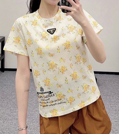 • [홍콩명품,PRADA] 프라다 24SS 삼각로고 여성 플라워 패턴 반팔 티셔츠 (2컬러), BM15268, TBG, 홍콩명품의류,구매대행,온라인명품