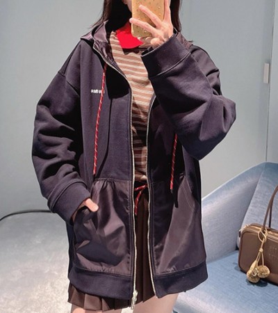 • [홍콩명품,MIU MIU] 미우미우 25SS 로고 자수 여성 후드 집업 자켓 (네이비), BM19738, TBG, 홍콩명품의류,구매대행,온라인명품