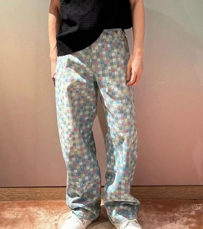 [홍콩명품.LOUIS VUITTON] 루이비통 25SS 로고 다미에 오버핏 데님 팬츠 진 청바지, BM19825, KB, 홍콩명품의류,구매대행,온라인명품 > 남자의류