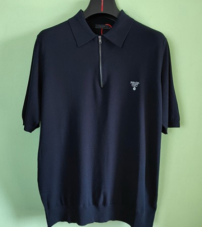 • [홍콩명품,PRADA] 프라다 25SS 로고 자수 하프지퍼 카라 폴로 반팔 티셔츠 (네이비), BM19876, JL, 홍콩명품의류,구매대행,온라인명품