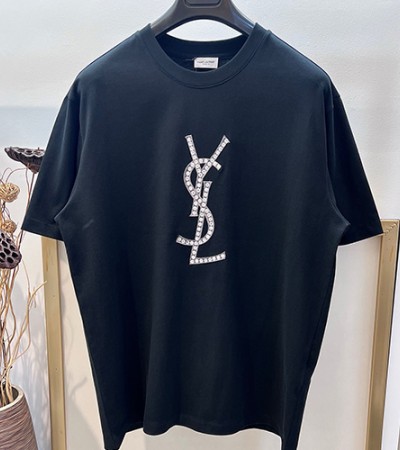 [홍콩명품.YSL] 입생로랑 25SS 로고 다이아 장식 반팔 티셔츠 (블랙), BM20233, YS, 홍콩명품의류,구매대행,온라인명품 > 남자의류