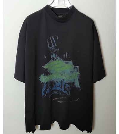 • [홍콩명품.BALENCIAGA] 발렌시아가 25SS 로고 그래픽 빈티지 반팔 티셔츠 (블랙), BM20535, JL, 홍콩명품의류,구매대행,온라인명품