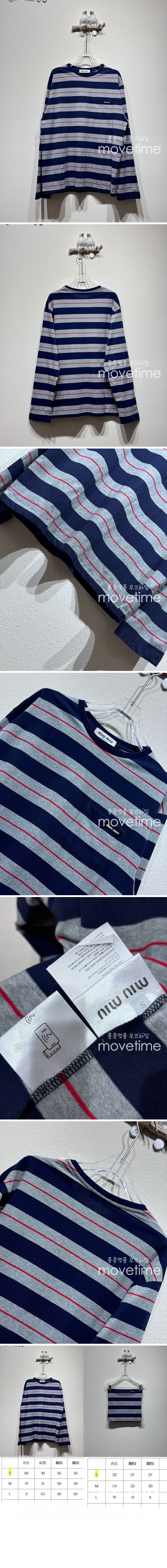 • [홍콩명품,MIU MIU] 미우미우 25SS 로고 여성 스트라이프 긴팔 티셔츠 (네이비-그레이), BM20766, KB, 홍콩명품의류,구매대행,온라인명품