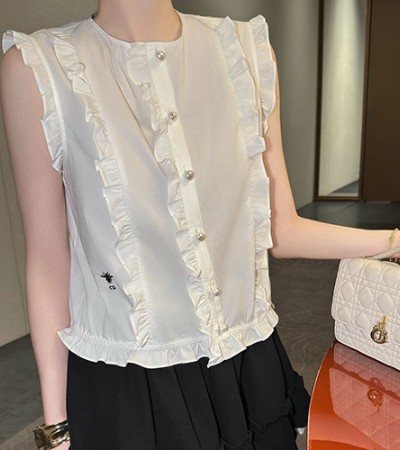 • [홍콩명품,Christian Dior] 디올 25SS 로고 여성 슬리브리스 블라우스 셔츠 (화이트), BM20795, TBG, 홍콩명품의류,구매대행,온라인명품