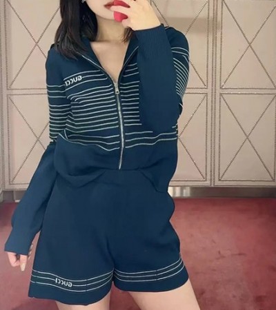 • [명품레플리카.Gucci] 구찌 25SS 로고 여성 스트라이프 하이넥 니트 집업 자켓 + 미니 쇼츠 반바지 핫팬츠 상하의 세트 (네이비), BM20873, TBG, 홍콩명품의류,구매대행,온라인명품