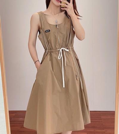 [홍콩명품,MIU MIU] 미우미우 25SS 로고 여성 탑 미디 원피스 (브라운), BM21119, TBG, 홍콩명품의류,구매대행,온라인명품 > 여성몰
