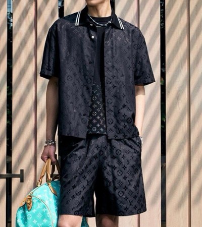 • [명품레플리카.LOUIS VUITTON] 루이비통 25SS 로고 모노그램 반팔 남방 셔츠 + 쇼츠 반바지 상하의 세트 (블랙), BM21172, JU, 홍콩명품의류,구매대행,온라인명품