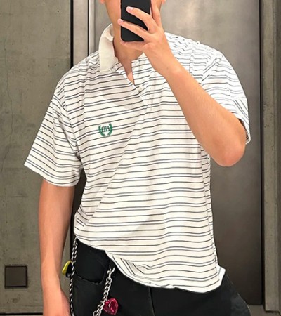• [명품레플리카.BALENCIAGA] 발렌시아가 25SS 로고 스트라이프 카라 폴로 반팔 티셔츠 (화이트), BM21208, KB, 홍콩명품의류,구매대행,온라인명품
