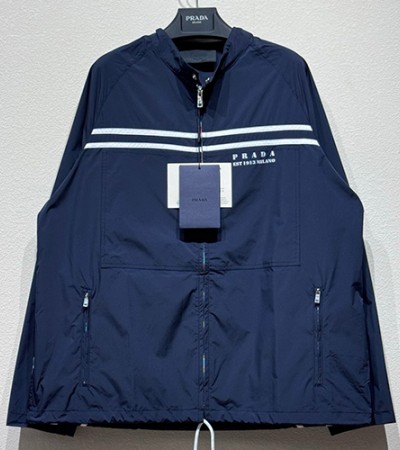 • [명품레플리카,PRADA] 프라다 25SS 로고 프린트 후드 바람막이 자켓 (네이비), BM21216, KB, 홍콩명품의류,구매대행,온라인명품