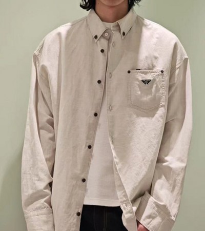 [홍콩명품,PRADA] 프라다 25SS 삼각로고 데님 남방 셔츠 (베이지), BM21472, JU, 명품레플리카,미러급,온라인쇼핑몰사이트 > 남자의류