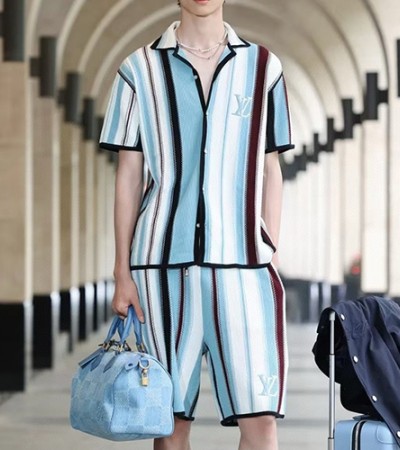 [홍콩명품.LOUIS VUITTON] 루이비통 25SS 로고 자수 카라 오픈 반팔 티셔츠 + 쇼츠 반바지 상하의 세트 (스카이블루), BM21522, JL, 명품레플리카,미러급,온라인쇼핑몰사이트 > 남자의류