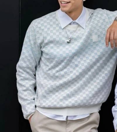 [홍콩명품.LOUIS VUITTON] 루이비통 25SS 로고 다미에 니트 스웨터 (화이트), BM21618, JU, 명품레플리카,미러급,온라인쇼핑몰사이트 > 남자의류