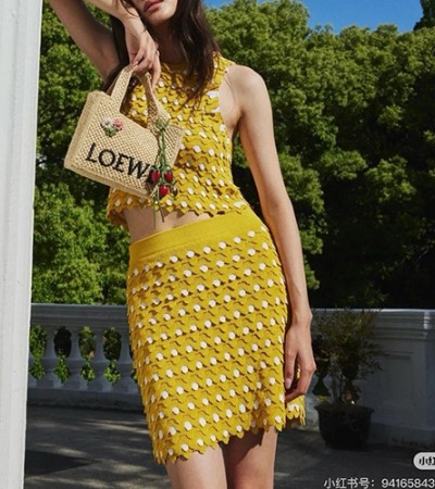 홍콩명품.LOEWE] 로에베 25SS 로고 여성 니트 탑 + 미디 스커트 상하의 세트 (노랑), BM21775, TBG, 레플리카의류,미러급사이트 > 여성몰
