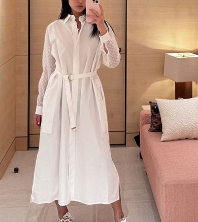 • [홍콩명품.LOUIS VUITTON] 루이비통 25SS 로고 여성 셔츠 롱 원피스 (화이트), BM21779, TBG, 레플리카의류,미러급사이트