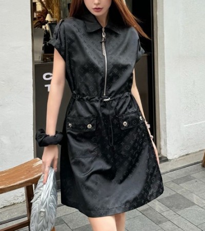 • [홍콩명품.LOUIS VUITTON] 루이비통 25SS 로고 모노그램 여성 반팔 원피스 (블랙), BM21784, TBG, 레플리카의류,미러급사이트