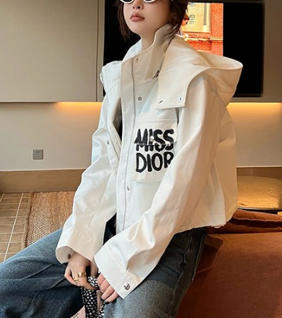 • [홍콩명품,Christian Dior] 디올 25SS 로고 여성 MISS DIOR 쇼트 후드 자켓 (화이트), BM21822, COCO, 레플리카의류,미러급사이트