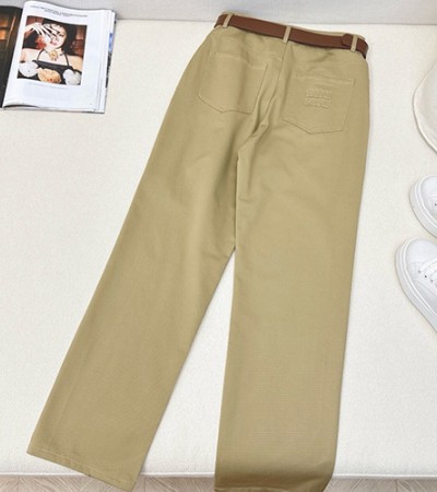 • [홍콩명품,MIU MIU] 미우미우 25SS 로고 여성 오버핏 팬츠 바지 (베이지), BM21825, COCO, 레플리카의류,미러급사이트