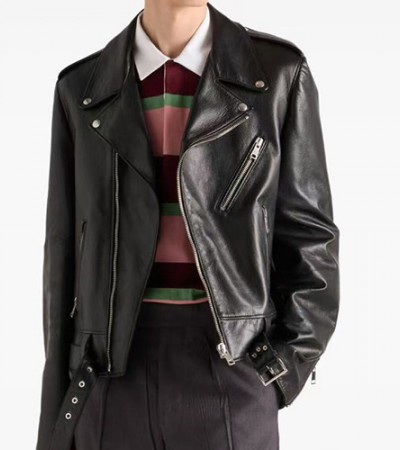 • [홍콩명품,PRADA] 프라다 25SS 삼각로고 레더 가죽 자켓 (블랙), BM22054, TOM, 레플리카의류,미러급사이트