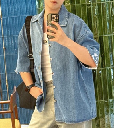 • [홍콩명품.LOEWE] 로에베 25SS 로고 데님 반팔 남방 셔츠, BM22099, JL, 레플리카의류,미러급사이트