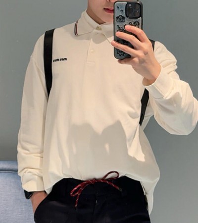 [홍콩명품,MIU MIU] 미우미우 25SS 로고 자수 카라 폴로 긴팔 반팔 티셔츠 (2컬러), BM22103, JL, 레플리카의류,미러급사이트 > 남자의류