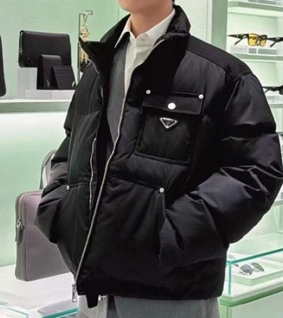 • [홍콩명품,PRADA] 프라다 25SS 삼각로고 나일론 다운 패딩 자켓 (블랙), BM22147, JL, 레플리카의류,미러급사이트