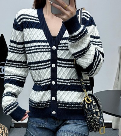 [홍콩명품,Christian Dior] 디올 25SS 로고 여성 스트라이프 V넥 니트 가디건 (화이트), BM22151, JL, 레플리카의류,미러급사이트 > 여성몰