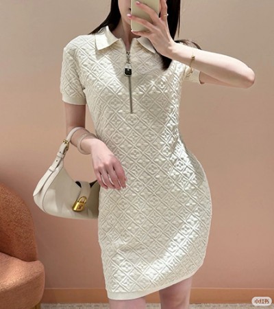 • [홍콩명품.LOUIS VUITTON] 루이비통 25SS 로고 여성 모노그램 카라 반팔 원피스 (화이트), BM22154, JL, 레플리카의류,미러급사이트