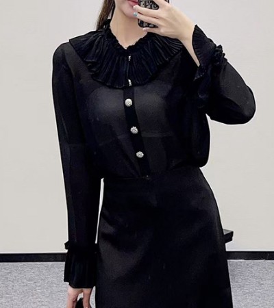 • [홍콩명품.CHANEL] 샤넬 25SS 로고 여성 블라우스 셔츠 (블랙), BM22161, JL, 레플리카의류,미러급사이트