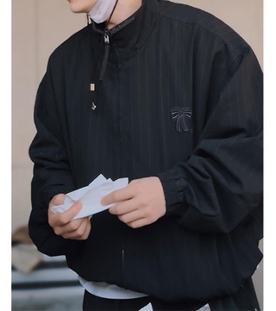 [홍콩명품.ACNE STUDIO] 아크네스튜디오 25SS 로고 터틀넥 스트라이프 봄버 자켓 (블랙), BM22323, KK, 레플리카의류,미러급사이트 > 남자의류