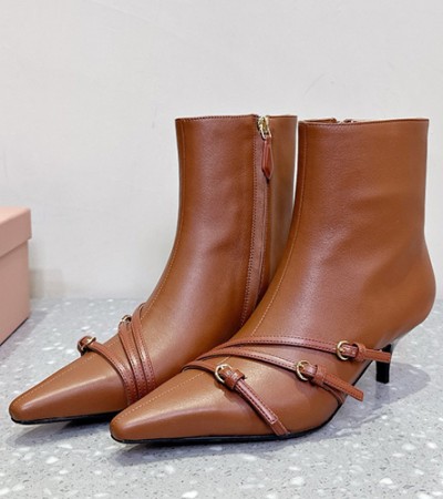 • [홍콩명품,MIU MIU] 미우미우 25SS 로고 여성 레더 가죽 5.5cm힐 부츠 (2컬러), SE5520, S4W, 명품스니커즈,운동화,구두,로퍼,하이탑,신발