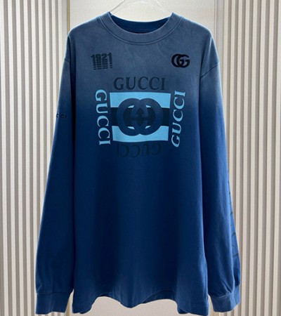 [홍콩명품.Gucci] 구찌 25SS 로고 프린트 긴팔 티셔츠 (블루), BM22524, G5, 레플리카의류,미러급사이트 > 남자의류