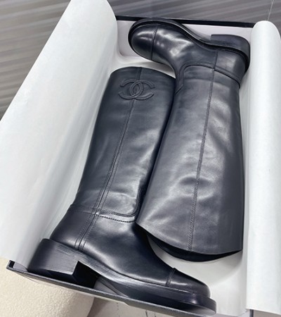 • [홍콩명품.CHANEL] 샤넬 25SS 로고 여성 레더 가죽 4cm 굽 구두 부츠 (블랙), SE5612, S4W, 명품스니커즈,운동화,구두,로퍼,하이탑,신발