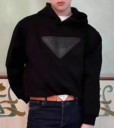 • [홍콩명품,PRADA] 프라다 25SS 삼각로고 후드 티셔츠 (블랙), BM22772, X2, 레플리카의류,미러급사이트
