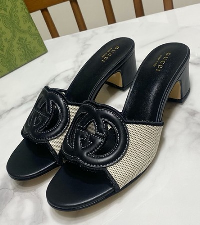 [홍콩명품.Gucci] 구찌 25SS 로고 여성 레더 가죽 5.5cm 굽 샌들 슬리퍼 (2컬러), SE5707, GHS, 명품스니커즈,운동화,구두,로퍼,하이탑,신발 요약정보 및 구매