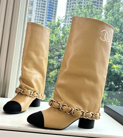 • [홍콩명품.CHANEL] 샤넬 25SS 로고 여성 레더 가죽 굽 구두 롱 부츠 (3컬러), SE5828, GHS, 명품스니커즈,운동화,구두,로퍼,하이탑,신발