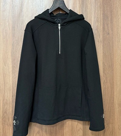 • [홍콩명품.Chrome Hearts] 크롬하츠 25SS 로고 하프지퍼 후드 티셔츠 (블랙), BM22872, RO, 레플리카의류,미러급사이트
