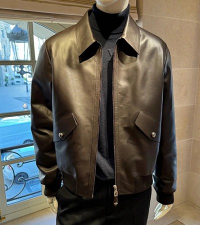 • [홍콩명품.LOUIS VUITTON] 루이비통 25SS 로고 레더 가죽 카라 봄버 자켓 (브라운), BM22883, PG, 레플리카의류,미러급사이트